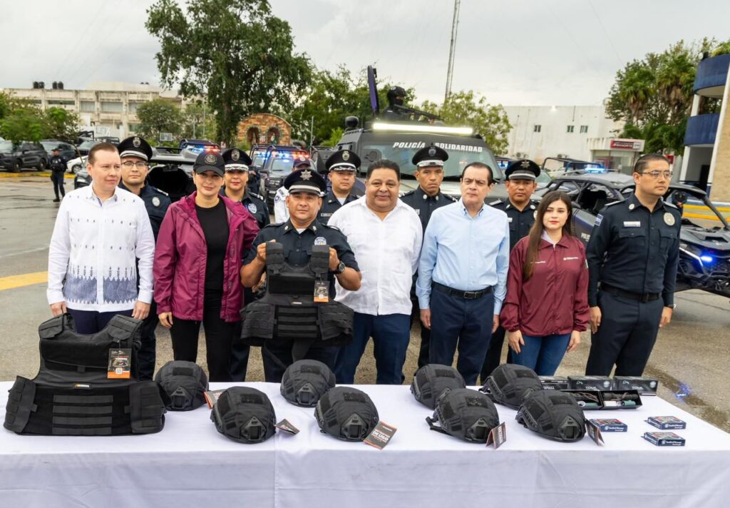 Playa del Carmen, 17 de marzo de 2026.— Con una inversión superior a 38.7 millones de pesos provenientes del Fondo de Aportaciones para el Fortalecimiento de los Municipios (FORTAMUN), la presidenta municipal Estefanía Mercado entregó uniformes, equipo táctico y cámaras corporales a elementos de la Secretaría de Seguridad Ciudadana Municipal (SSCM).
